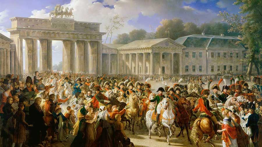 Cuando Napoleón culminó su invasión de Prusia en 1806, tras la Batalla de Jena, la cuadriga fue llevada a París como trofeo de guerra. Pero no les duró mucho a los franceses; En 1814 Napoleón fue derrotado y París tomada, de manera que las tropas prusianas la recuperaron.