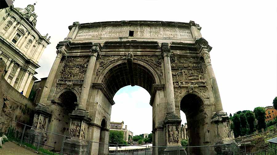 En la antigüedad, una cuadriga de bronce conducida por el Emperador Septimio Severo y sus dos hijos coronaba esta magnífica obra. Lo cierto es que sus hijos nunca tuvieron una buena relación a causa de rivalizar por el poder. Lo encontrarás al lado de la Curia.